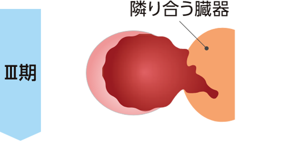 がんが被膜にまで及んでいることが顕微鏡で確認できるか、または周囲の組織に広がっていることが肉眼で確認できる